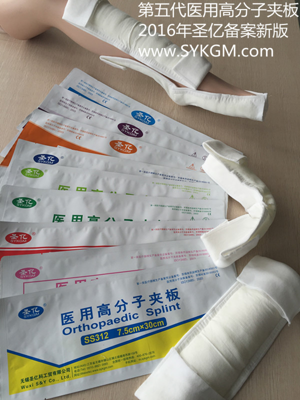 无锡圣亿专业生产一类医疗器械,四肢骨折用的医用高分子夹板和高分子固定绷带。