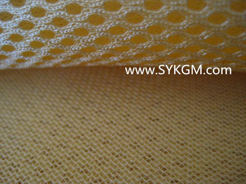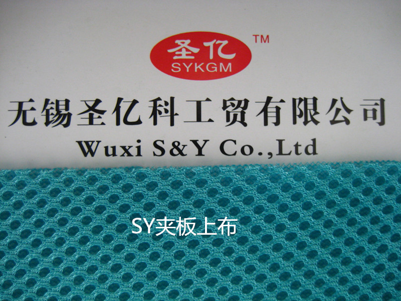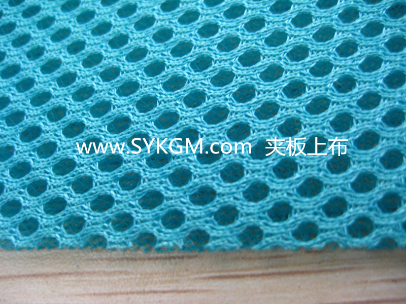 圣亿夹板上布是一种经编网布,由网孔表面,连接单丝,平布底面组成。通常,上下两面丝是涤纶,中间连接丝为涤纶单丝。厚度一般为2-4mm。