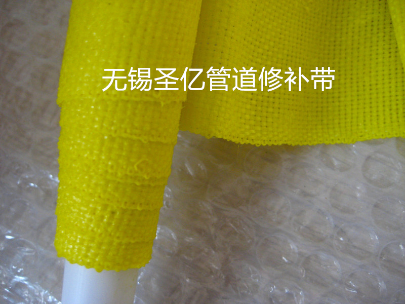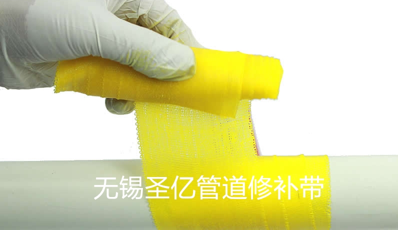 无锡圣亿科工贸有限公司研发生产的管道修补缠绕带,是免加热水激活缠绕带技术,它是由一种可水激活固化的聚氨酯胶浸渍玻璃纤维网状布带和环氧灰泥填充物组成,该新型缠绕带遇水激活,十分钟固化后形成像壳一样的整体保护套,无毒环保,可与饮用水直接接触。可完全在水下、激流中实现管道渗漏修复,其强大的应用范围和优势是普通加热型缠绕带无法比拟的。圣亿管道修补带是目前国内外最为先进的缠绕带新技术,在渗漏防腐加固的管道修补领域正被快速应用。